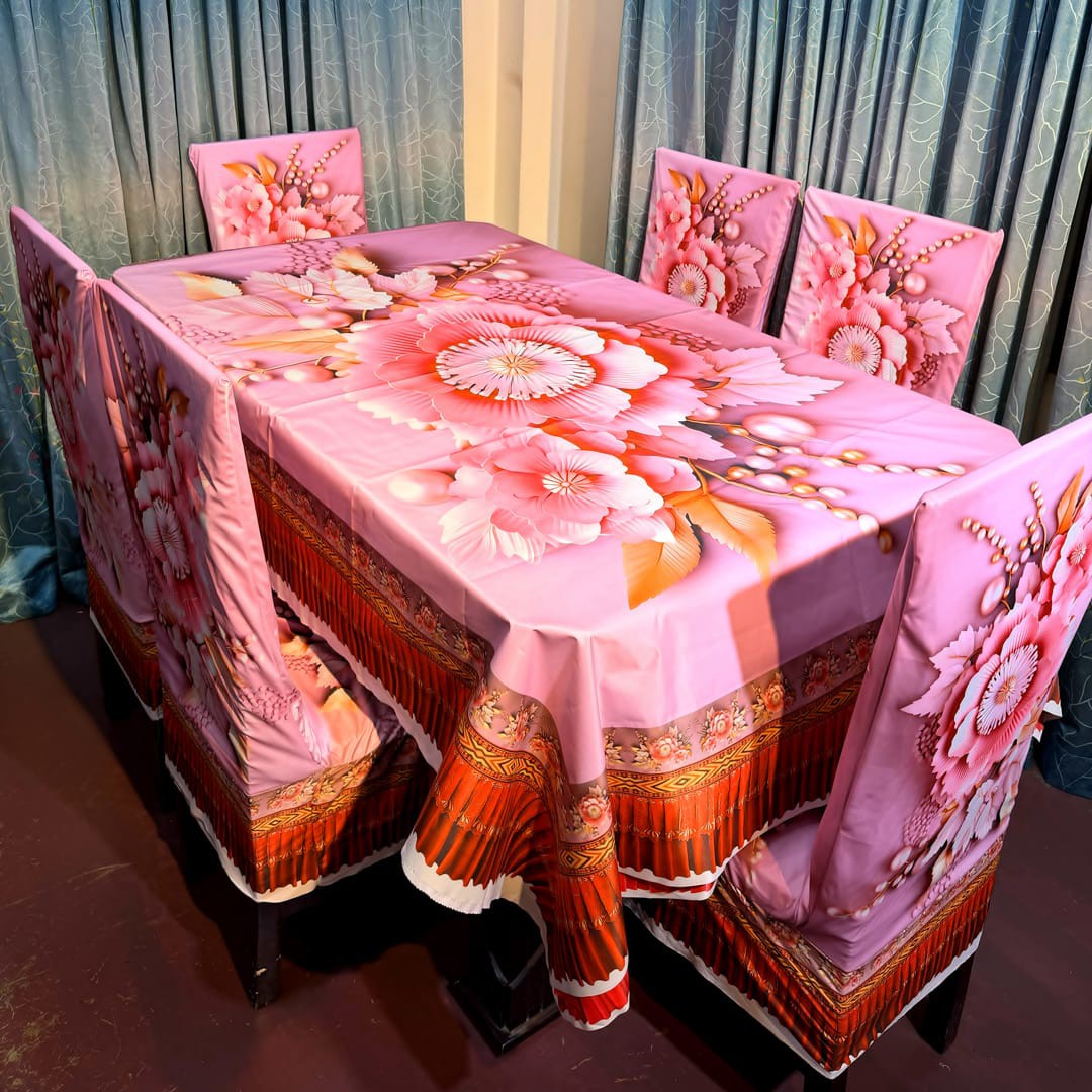 চমৎকার 3D প্রিন্টেড টেবিল ক্লথ সেট:""চায়না চিলি কটন কাপড়ের অসাধারণ মান ও আধুনিকতার অভিজ্ঞতা""